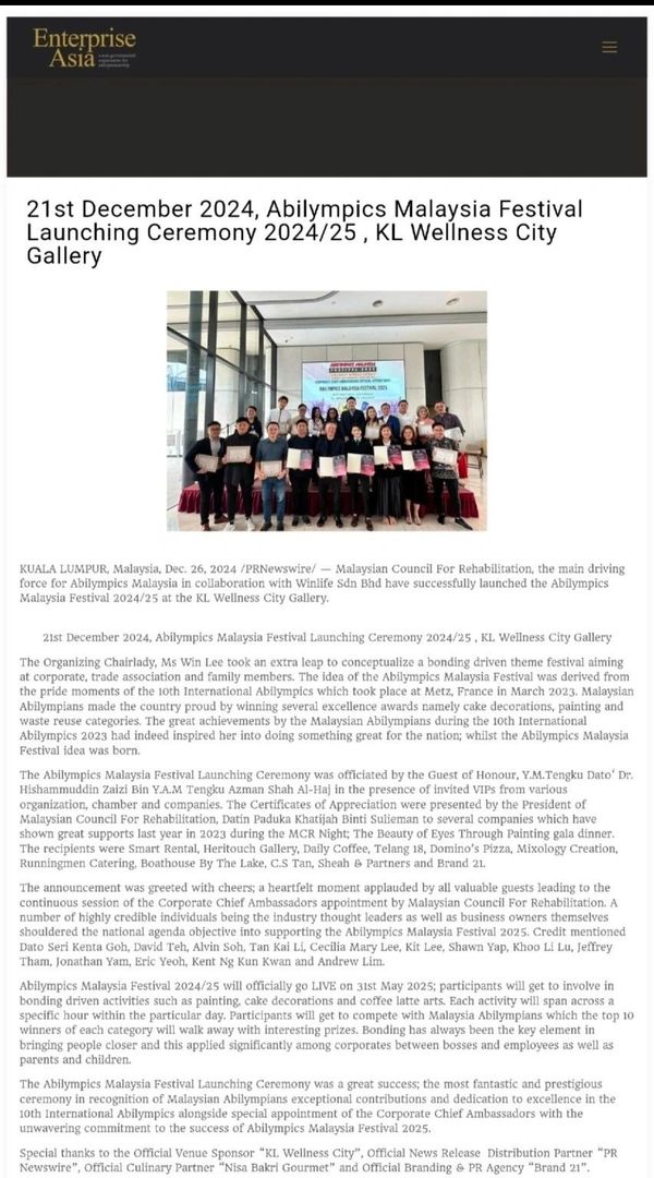 Official site designed and maintained by Brand 21 Media Services in collaboration with WinLife Sdn Bhd